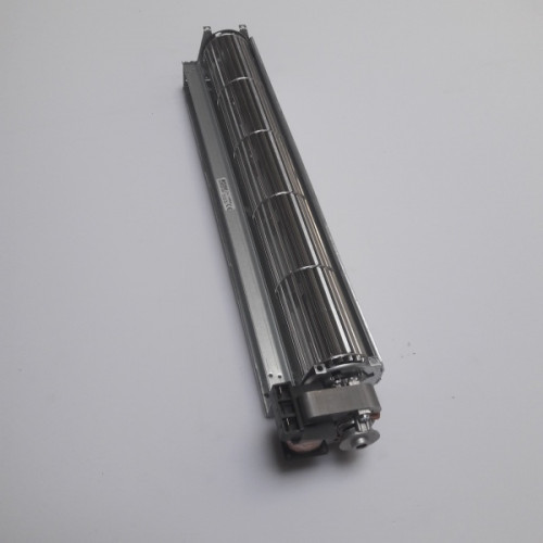 In a tangential blower, the air is drawn in over the entire length of the fan impeller. Inside the impeller, the airflow is diverted and accelerated by the vortex created by the rotation of the impeller.